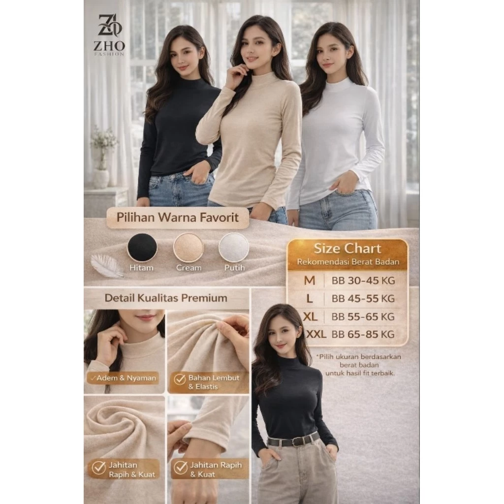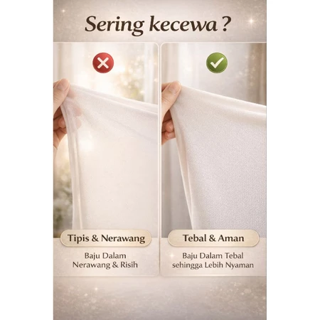 •Tidak Menerawang – Aman dipakai sebagai dalaman hijab atau gamis.
